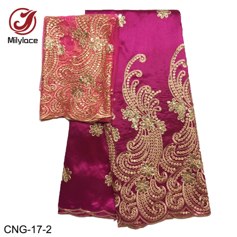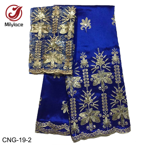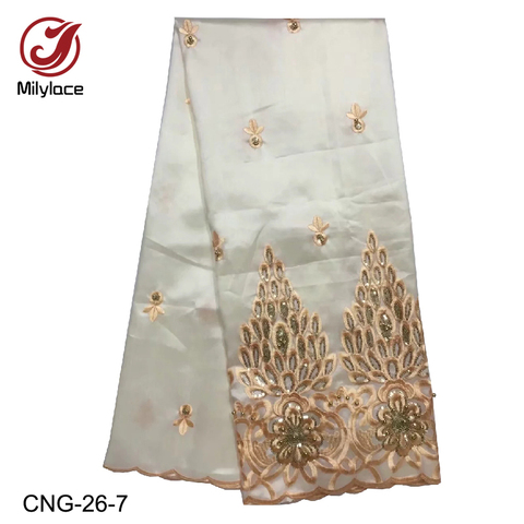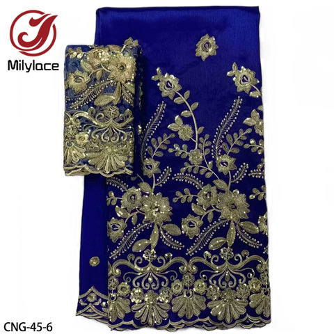 Groothandel Afrikaanse Gold Sequin Geborduurde George Kant Stof Met Sjaal
