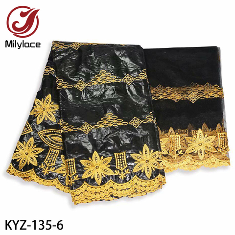 Geleneksel afrika nakış 5 metre Bazin kumaş elbise için 2 metre Net dantel ile